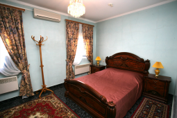 An excellent three-room apartment is ideal for a family (the living-room is 25 sq.m. and 2 bedrooms are 16 sq.m. each). The room is situated in the ancient part of the hotel. There is a sofa, atable, a 32in/81cm flat screen TV with satellite channels, a telephone, a mini-bar, a tea/coffee maker, air conditioning in the spacious living-room. Each bedroom is provided with double bed, satellite TV, wardrobe, and window blackout blinds. The bathroom is equipped with Jacuzzi, hairdryer, magnifying mirror, toiletries, white cotton towels and slippers. The Wireless broadband Internet access is FREE OF CHARGE.