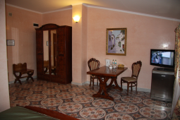 Una confortevole e accogliente camera di 22 m2. Nella camera – un letto matrimoniale or due letti singole, tavolino, mini-bar, bollitore per te` e caffe`, finestre con black-out, armadio, grande specchiera, televisore a schermo 32in/81cm piatto con canali satellitari (canali italiani incusi), aria condizionata, telefono, asciugacapelli, doccia, specchio, toileterie, pantofole.