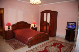 Un elegante appartamento a due zone - soggiorno di 33 m2 e zona letto di 23 m2. Il soggiorno ha un televisore a schermo 32in/81cm piatto con canali satellitari (canali italiani incusi), divano, tavolo da pranzo, credenza, mini-bar, bollitore per te` e caffe`, aria condizionata. Nella zona letto – letto matrimoniale, comodini, como, un televisore a schermo 32in/81cm piatto con canali satellitari (canali italiani incusi), telefono, specchiera grande, finestre con black-out, armadio. Il bagno e` dotato di vasca idromassaggio e doccia, asciugacapelli, specchio, toileterie, accappatoio, pantofole.